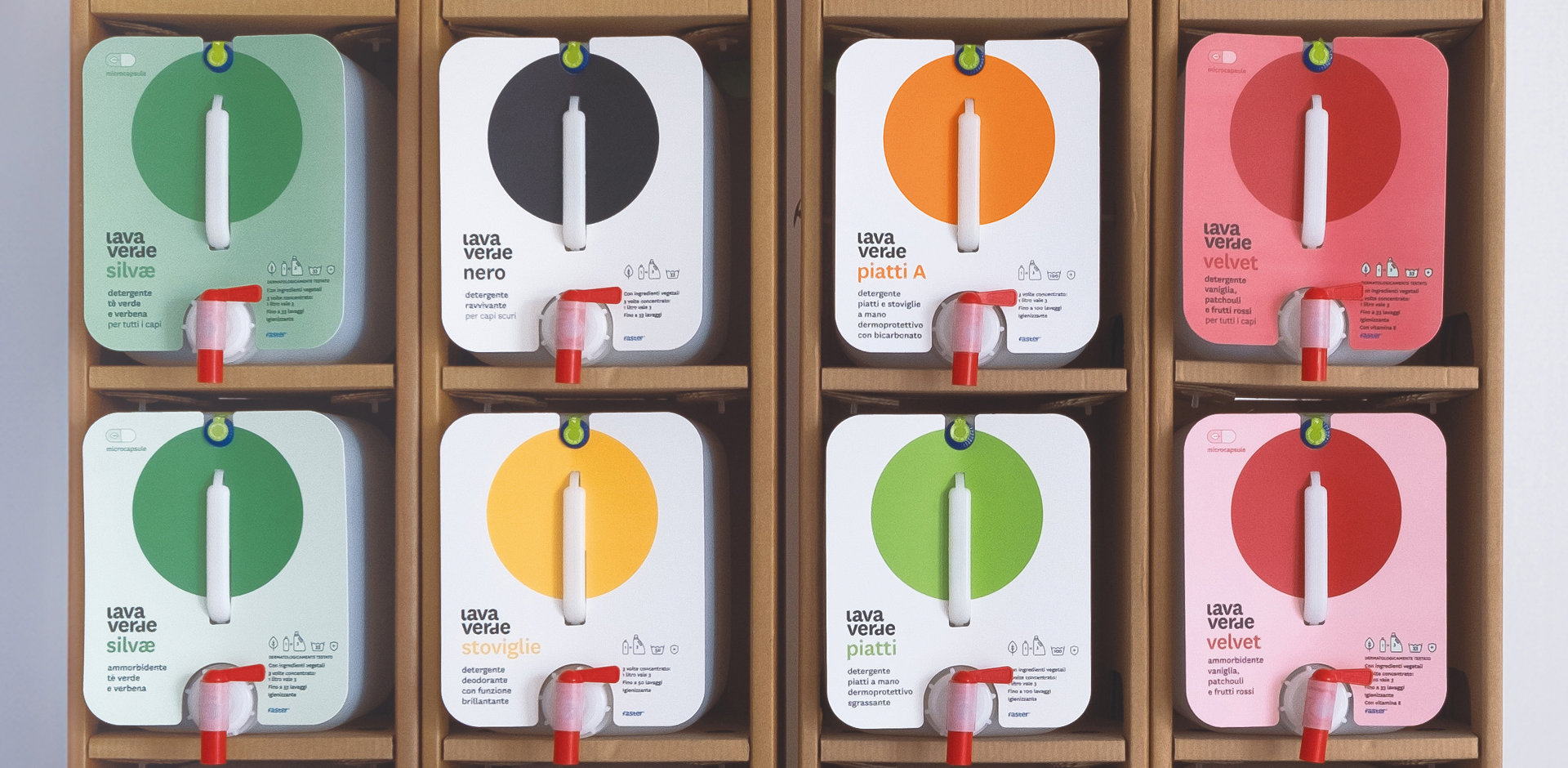 Il sistema di ricarica evita, infatti, inutile spreco di plastica e genera una minore quantità di rifiuti, incentivando l’abitudine di recarsi presso i numerosi rivenditori LavaVerde distribuiti in tutta Italia per riempire il flacone.