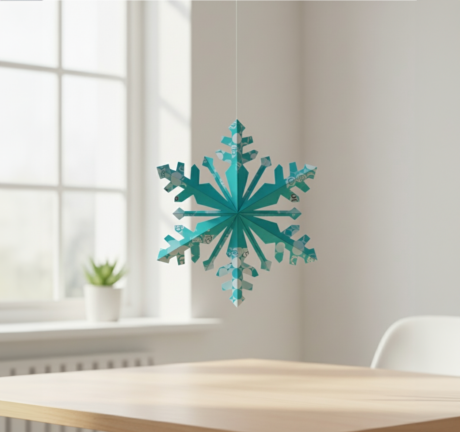 Apri delicatamente: apparirà un fiocco di neve tridimensionale, elegante e unico.