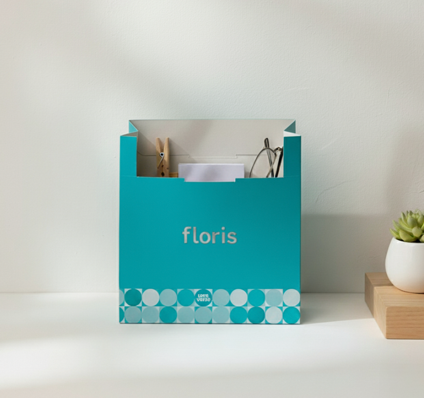 Dopo aver utilizzato i detergenti, la scatola Floris si trasforma in un elegante portaoggetti, perfetta per scrivania, trucchi o piccoli accessori. Un gesto semplice che unisce funzionalità e sostenibilità, portando ordine e stile nella tua quotidianità.