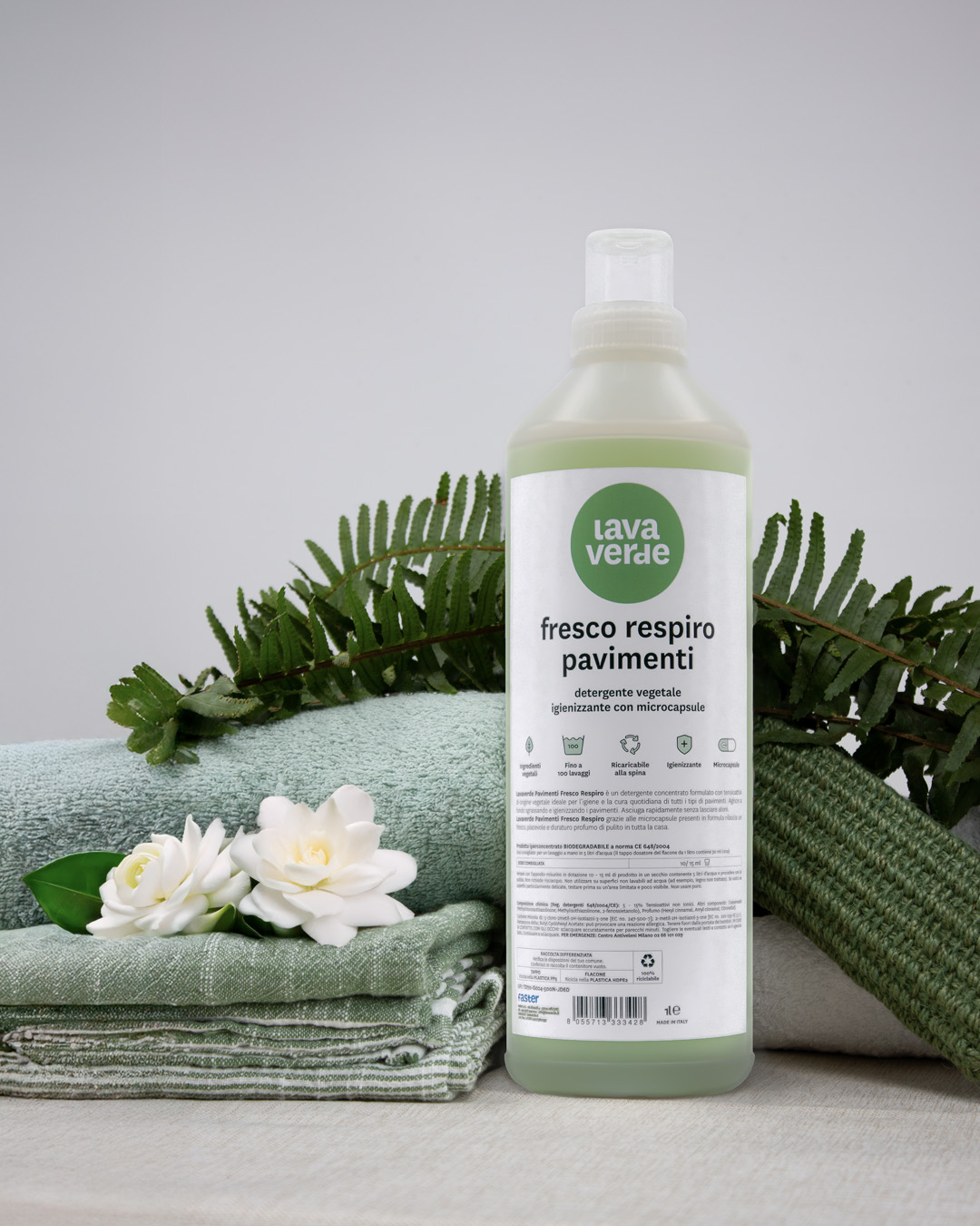 Pavimenti puliti, igienizzati e profumati a lungo grazie alla formula vegetale con microcapsule a rilascio graduale.